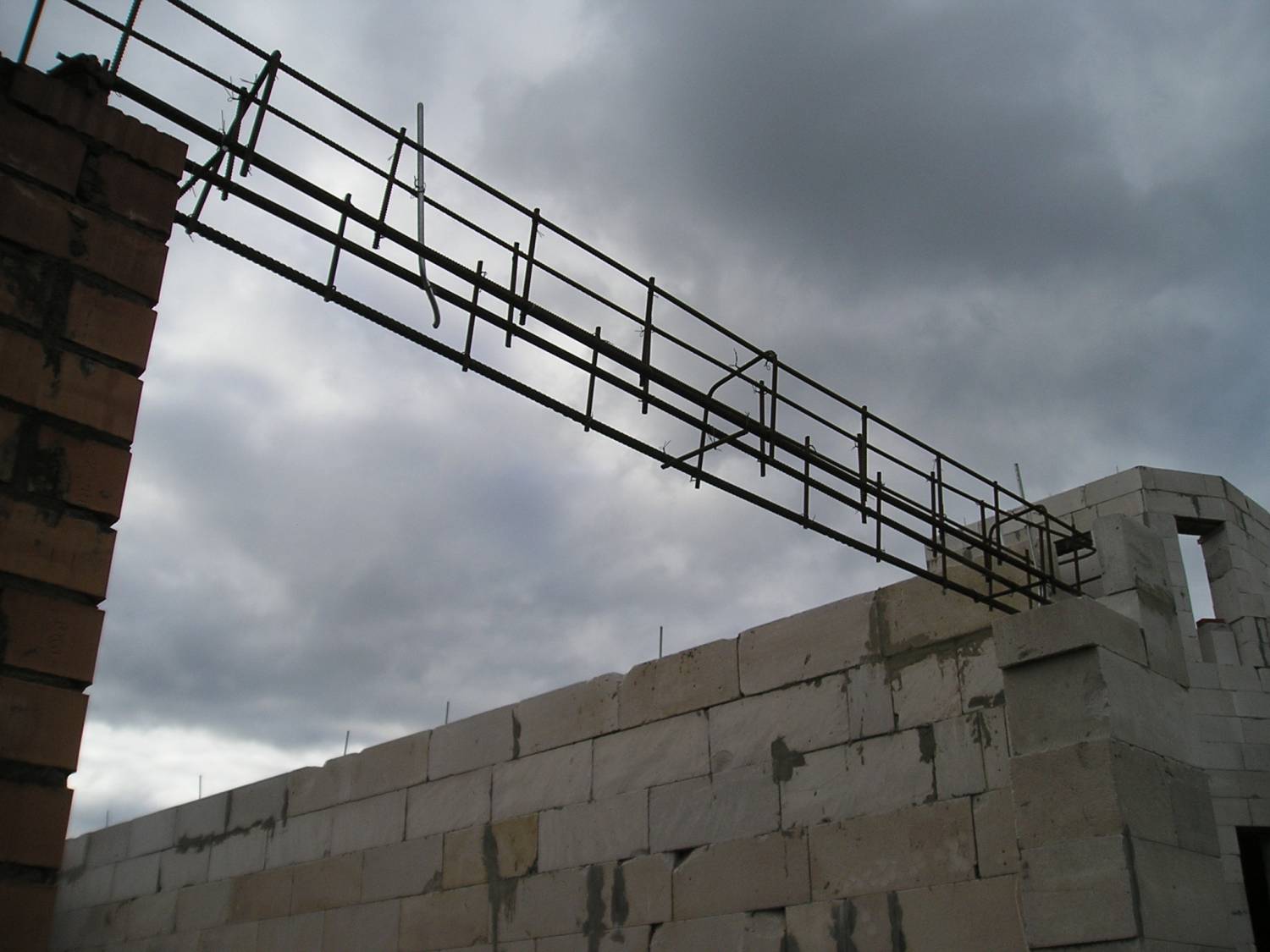 Арматура перемычек ворот связана, с низу 3 прута 18мм арматуры, с верху 10мм арматура.