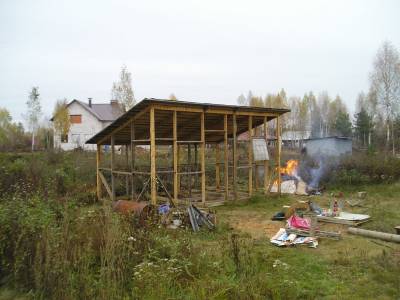 Второй день, добавили бруски в каркасе и зашили часть стен.
