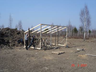 Как только сняли плодородный слой, и растаял снег, принялись за бытовку.