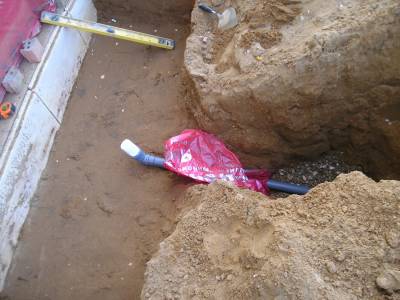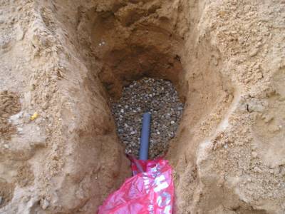 Вот сам дренаж, труба канализационная 5 см диаметр, 1 метр длины, плюс колено. На конце трубы, сделал отверстия дополнительные.