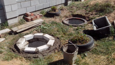 Сразу хотел ставить опалубку и бетонировать, так как красные кирпичи рассыпались в приямках на следующий же год.