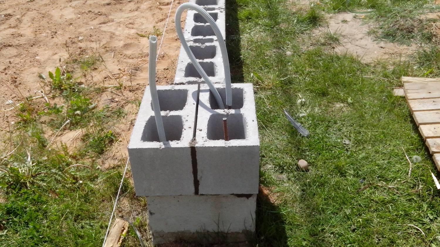 В некоторые столбы закладывал трубки под провода, для ворот и калитки (домофон-звонок).