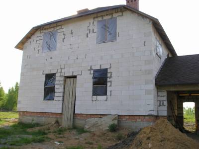 Так что не спеша, уложил не достающие 1,5 блока, и сделал разметку будущей лестницы и укрепил бруски для опалубки.