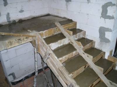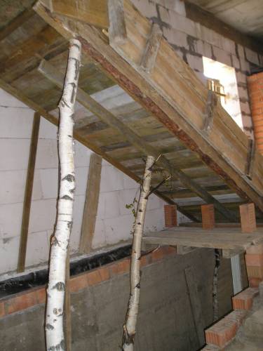 С низу видим лестница будет опираться на плиту, там делал отверстия и вбивал арматуру, и по боковым несущим стенкам.