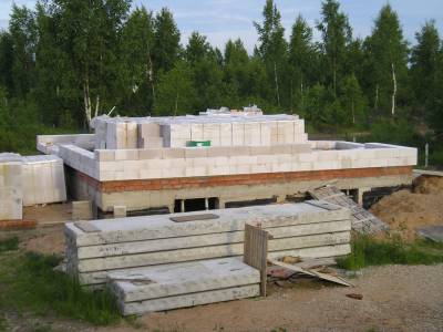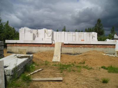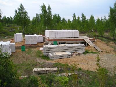Около 50 м3 блоком 625*400*250 производства "Забудова" из ячеистого бетона. Это первое денежное вложение в строительство больших размеров за один заход.