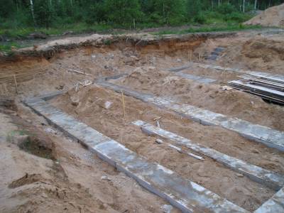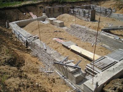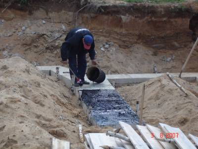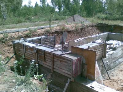 А у меня вот так ещё. Надо до зимы успеть залить весь периметр (30-60 см). Прижать бетоном гидроизоляцию, и чтоб равномерно прижимало фундамент.