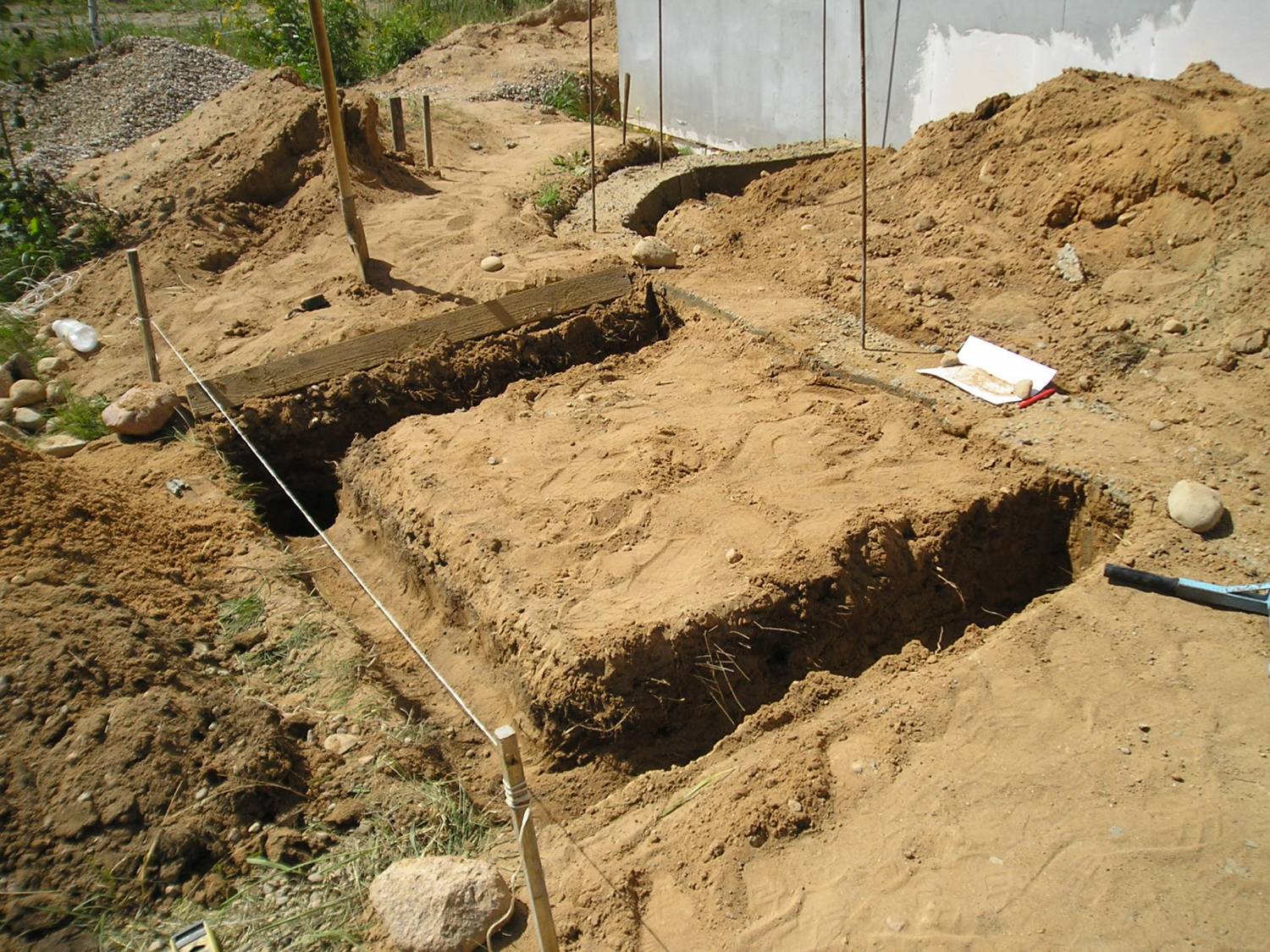 Подбирал погоду, чтобы 2 дня подряд не было дождя. Так как почти 2 м3 надо до заливки уровня земли бетона, план в статье "Эскиз пристройки".