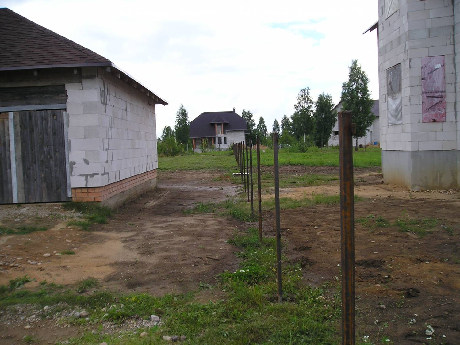 Столбики между соседом/другом Андреем, профильная труба 60*40*3 высота 2,6 м, с ушами и латками снизу и сверху, ещё не окрашена. Над землёй 1,6-1,8 м.