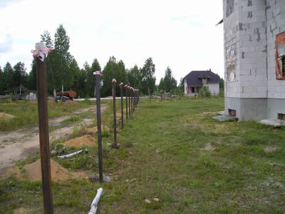 Столбики со стороны тех проезда, профильная труба 60*60*3 высота 3 м, без ушей, не окрашена. Над землёй 1,8-1,9 м.
