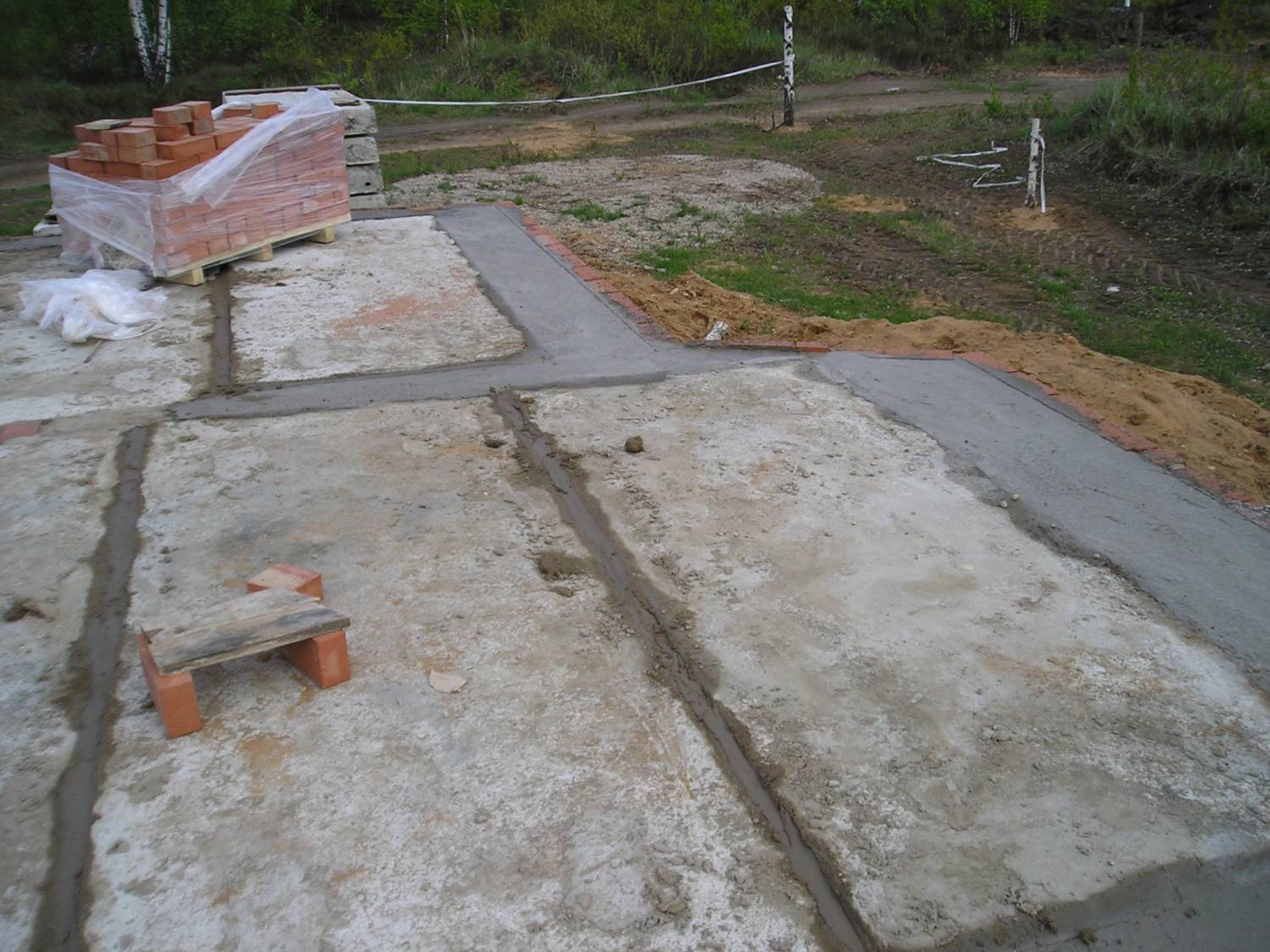 Это до заливки, выложен кирпич по периметру и в желобе лежит пруты арматуры диаметр 12мм.