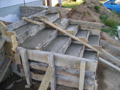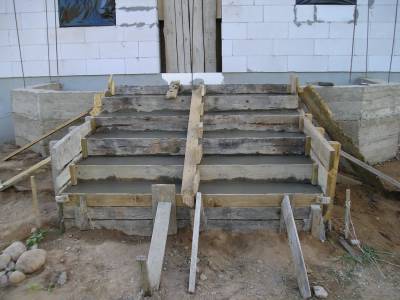 Готово, почти 0,8 м3 бетона. Опалубку под ступенек немного согнуло, из-за того что 25-ка, но какая была.
