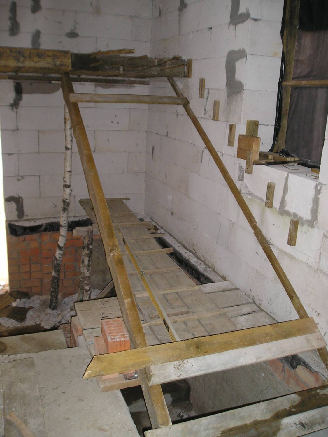 Прошло 11 дней, после заливки лестничной площадки, пора снимать опалубку, и сразу же приступил к монтажу опалубки для лестницы.