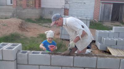 Первый ряд укладывал на гидроизоляцию, чтоб с фундамента не тянула влагу, а так же под шнурок.