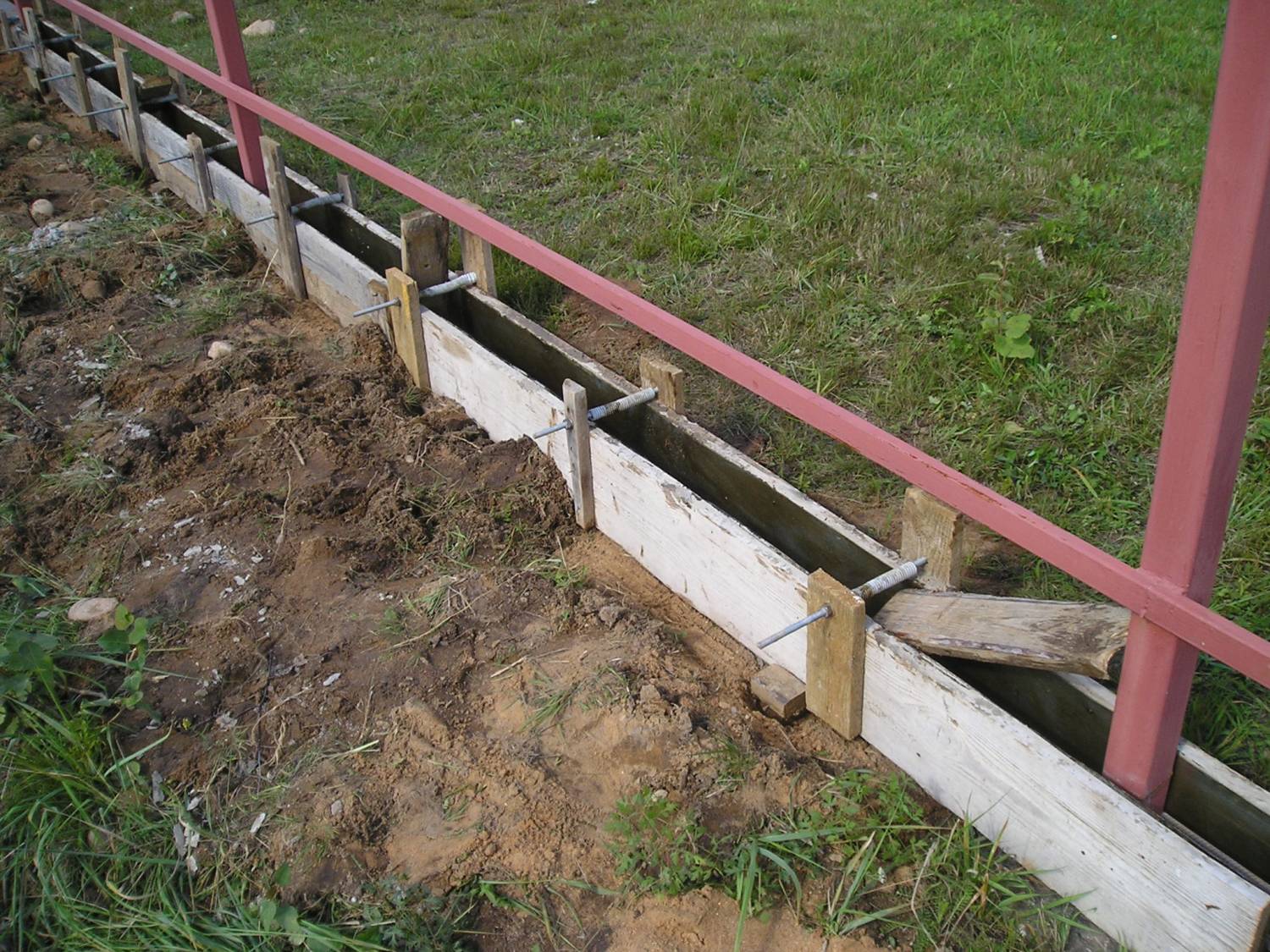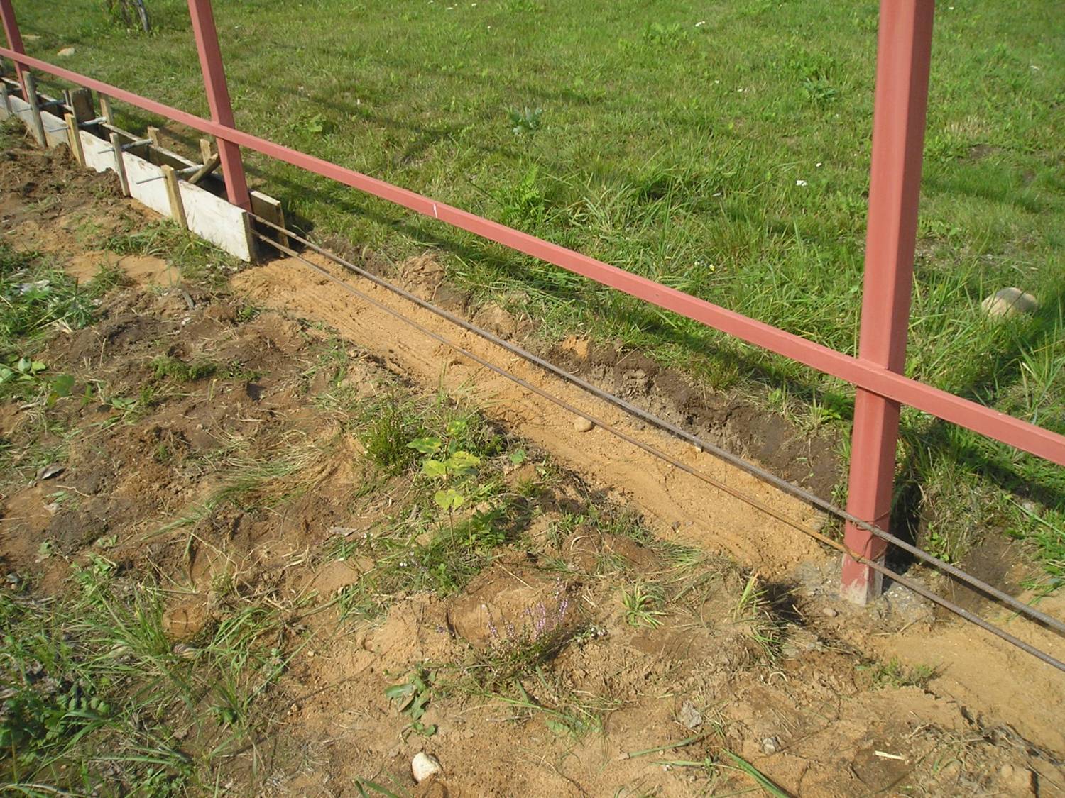 Столбики заглублены до 120 см. Между столбиками выравниваю, и подсыпаю песок, в идеале надо 10-15 см гравия (щебня). Армирование 2 прутка 10 мм арматуры.