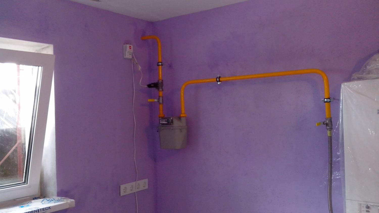 Газ в доме, трубу можно красить в любой цвет. Но газ для меня ассоциируется с жёлтым цветом, так пусть он и будет жёлтым :)