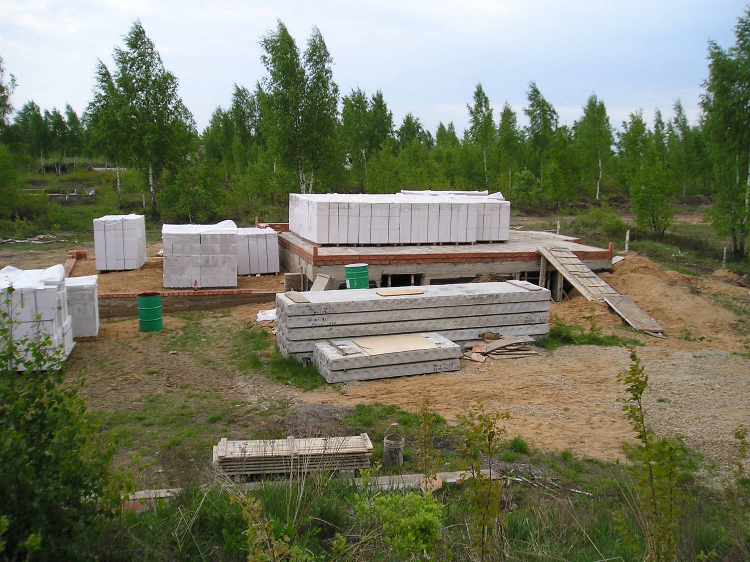 Около 50 м3 блоком 625*400*250 производства "Забудова" из ячеистого бетона. Это первое денежное вложение в строительство больших размеров за один заход.
