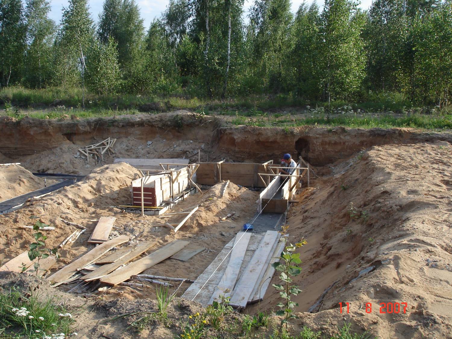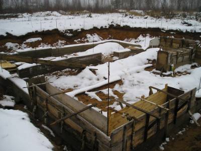 А у меня вот так ещё. Надо до зимы успеть залить весь периметр (30-60 см). Прижать бетоном гидроизоляцию, и чтоб равномерно прижимало фундамент.