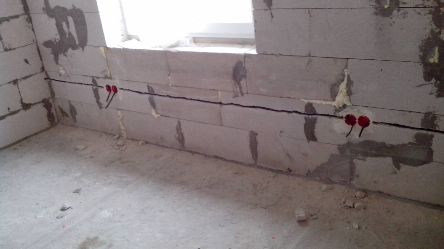 После летнего проживания, мы с женой определились где будут какие электрические точки. На фото видно, что кабель укладывал в металлическом рукаве.