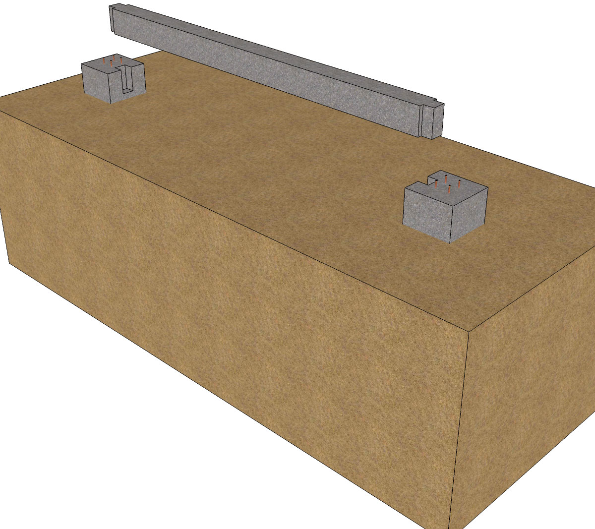Тут я демонстрирую, как будто мы балку укладываем краном, но в самом деле мы её заливаем хорошим бетоном марка не ниже М200.