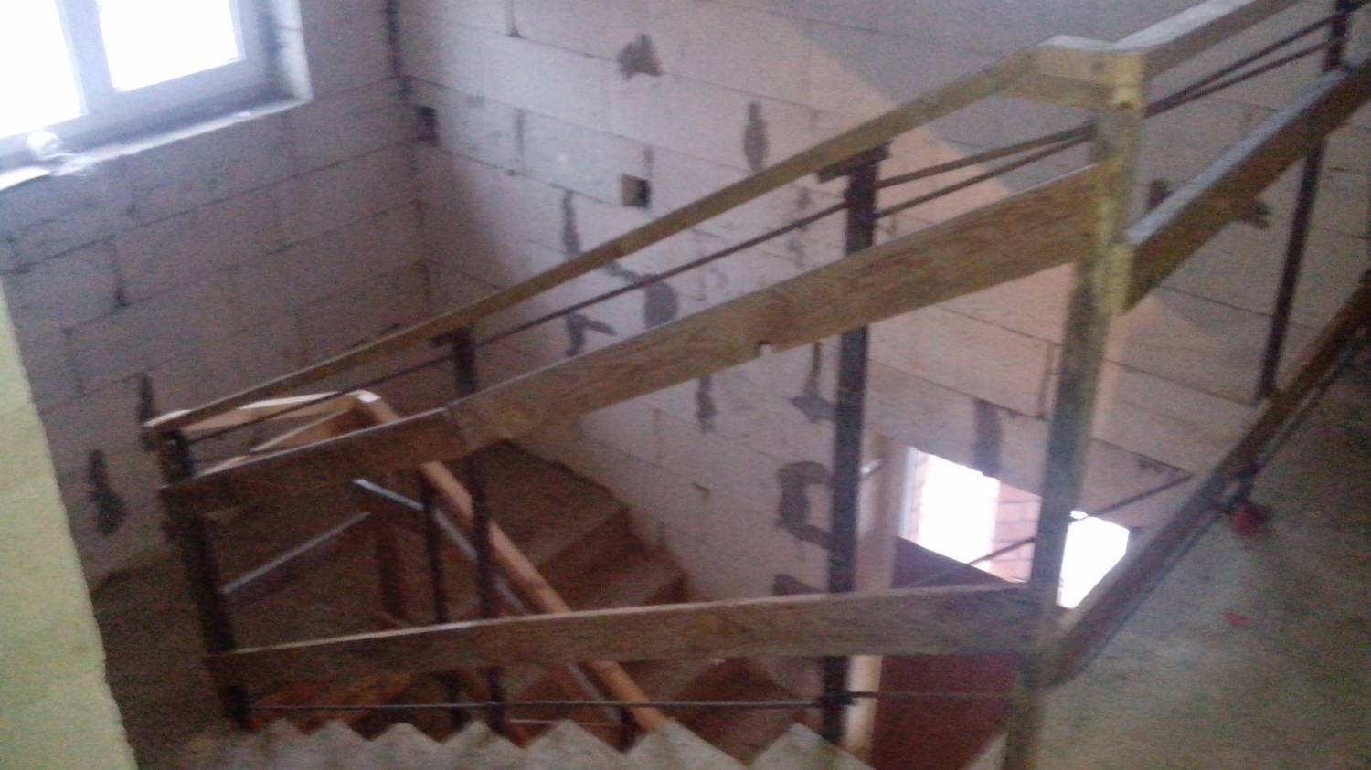 Установил временные перила, каркас из профильной трубы 20*40*2 плюс арматура 10 мм. А остальное деревом, в будущем покрашу.