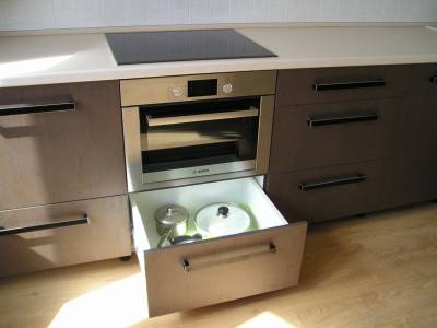 - Внизу вместо шкафчиков сделать выдвижные ящики.