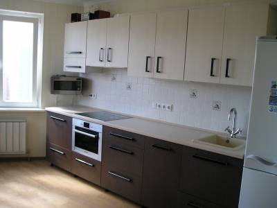 На нашей кухне холодильник мог стоять только в углу, вдалеке от окна, что сразу убрало возможность угловой кухни. Жена не очень этому обрадовалась, но позже была не против, я лично не стремился к угловой.