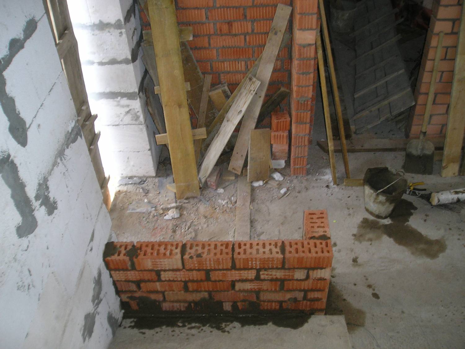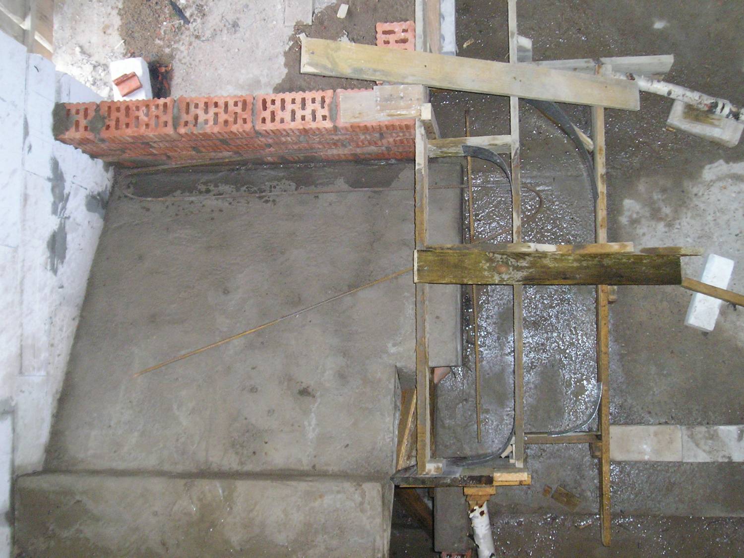 Чтоб не делать дополнительную опалубку, я часть стенки выложил из кирпича.