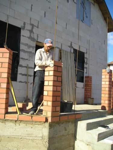 В пятницу погода подвела, но суббота и воскресение хорошо, правда времени у меня было мало, по этому всего по 13 рядов в восьми столбиках. 208 кирпичей.