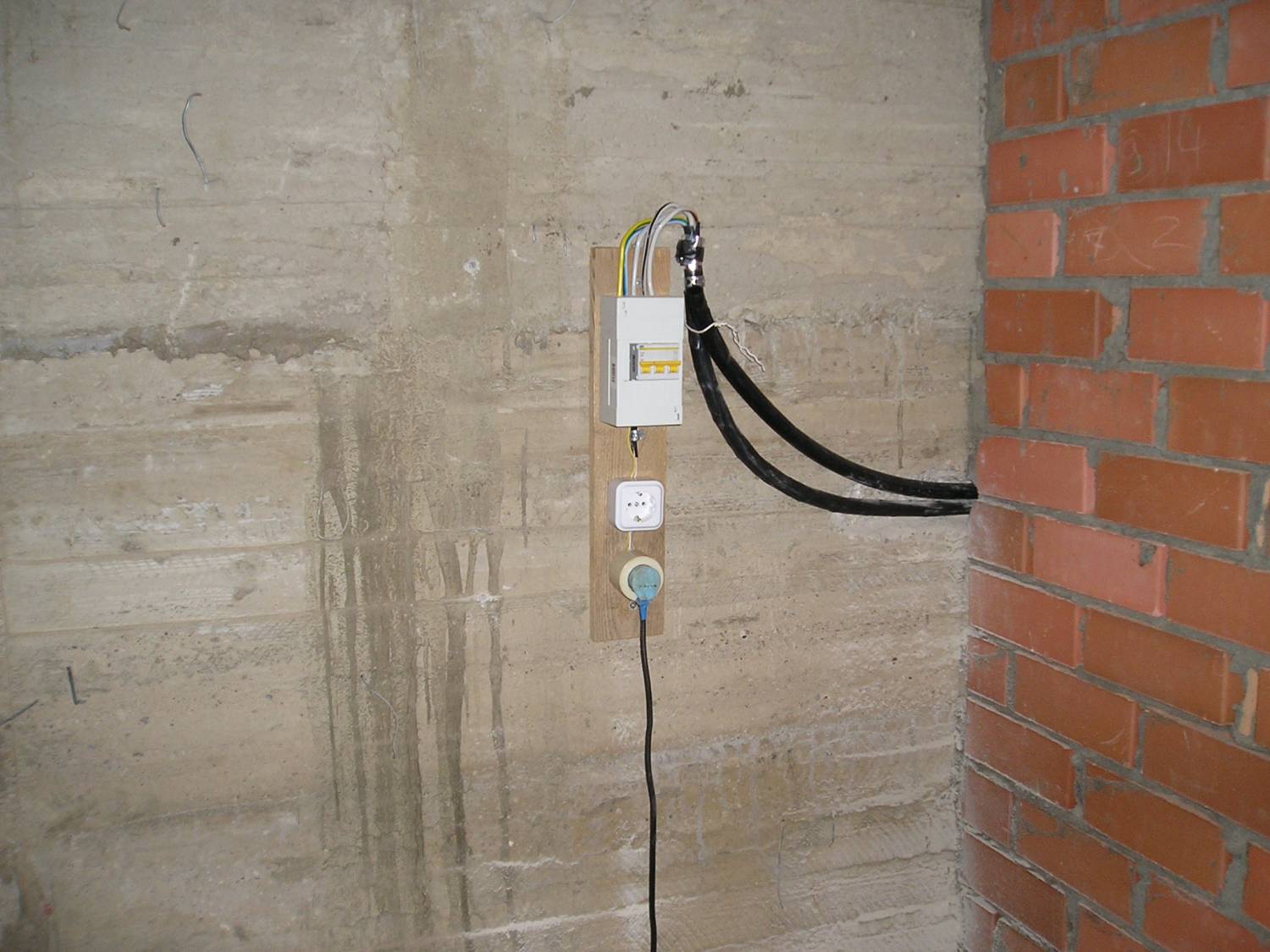 По рекомендации Димы, сделали временный автомат на 20А и пару розеток, для временного пользования, будущий щиток будет ближе к стене, и до самого последнего момента можно будет пользоваться данным агрегатом.