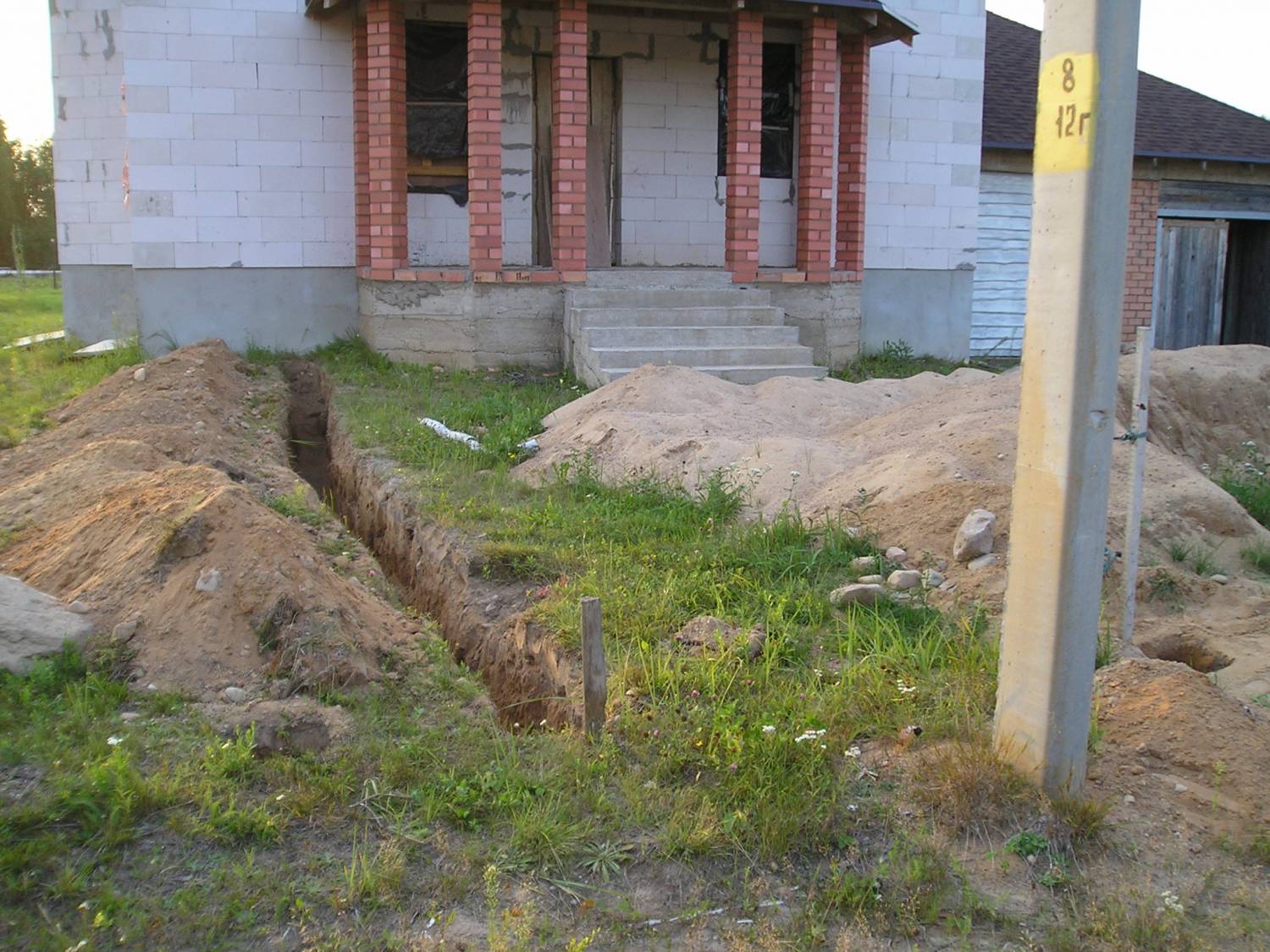 Тем временем я с Димой, выкопал траншею от будущего ящика к дому.