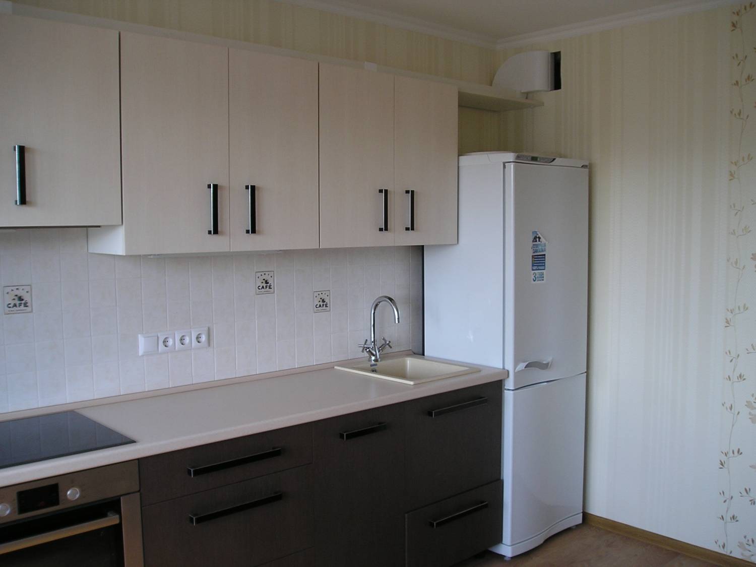 На нашей кухне холодильник мог стоять только в углу, вдалеке от окна, что сразу убрало возможность угловой кухни. Жена не очень этому обрадовалась, но позже была не против, я лично не стремился к угловой.