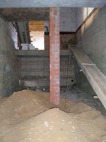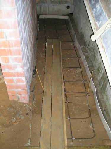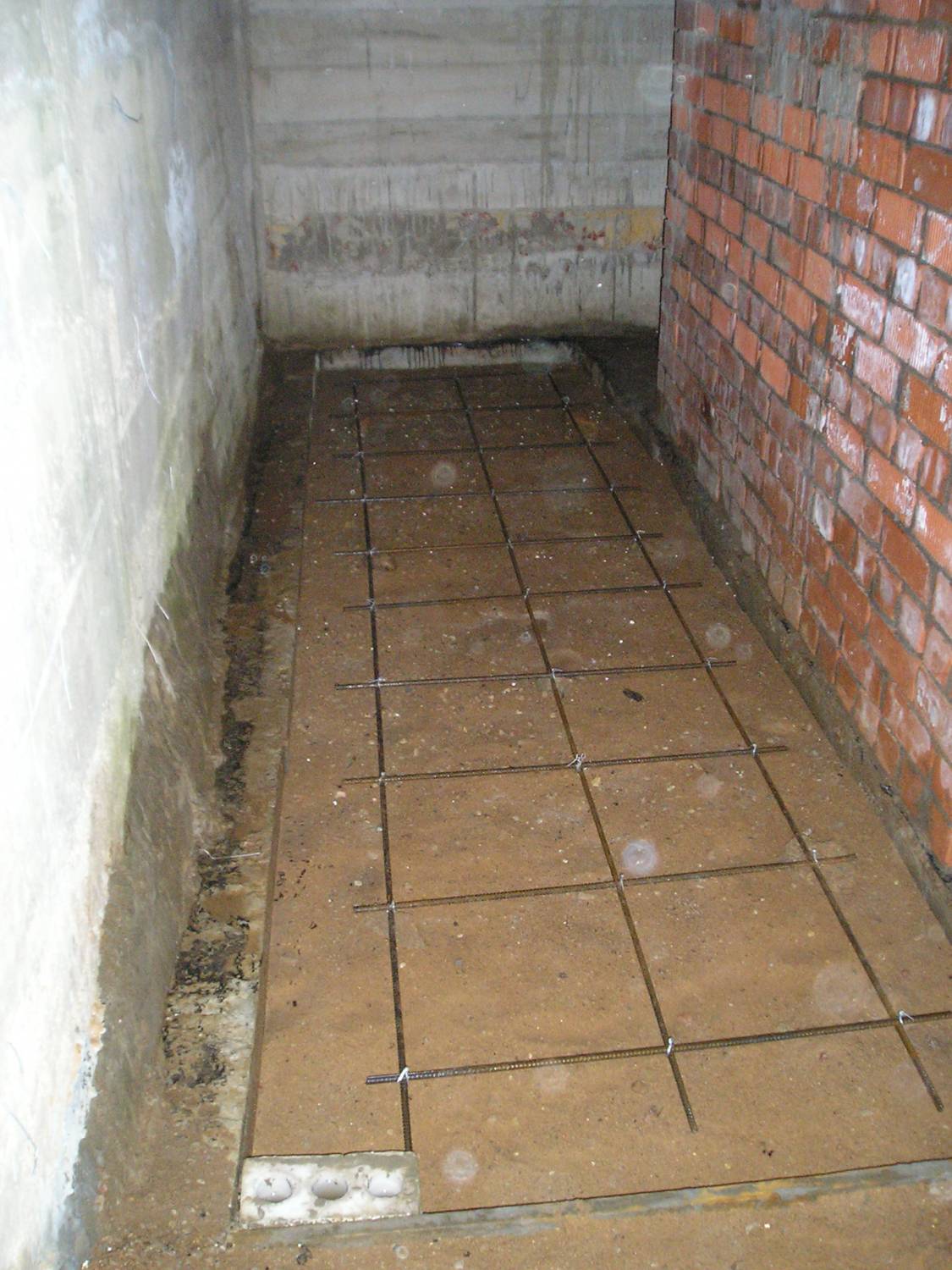 Готова черновая стяжки и под лестницей (справа) и в погребе (слева).